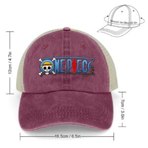 One Piece Glam Hat Adjustable Unisex Denim Baseball Cap for Men & Women, Wine Red