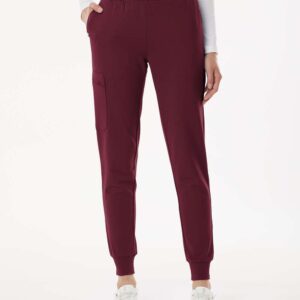 Jaanuu Women’s Rubi Ultrasoft Scrub Joggers offer exceptional comfort and stretch with their ULTRAsoft rayon-nylon-spandex blend. Designed with a slim, mid-rise fit, they feature four-way stretch, antimicrobial protection, moisture management, and wrinkle resistance for all-day performance. Multiple pockets—including hand, back, cargo, and a concealed zip pocket—provide convenient storage.