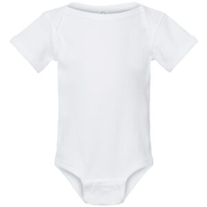 The Rabbit Skins Infant Baby Rib Bodysuit is a soft, comfortable, and durable onesie designed for babies from Newborn (NB) to 24 months (24M). Made with 100% combed ring-spun cotton, this bodysuit is gentle on delicate skin and perfect for everyday wear. Heathers are crafted from 90/10 cotton/polyester and Granite Heathers 60/40 cotton/polyester, ensuring a soft and breathable fit. The 1×1 baby rib fabric, flatlock stitched seams, and double-needle ribbed binding on neck, shoulders, sleeves, and leg openings provide extra durability while allowing freedom of movement. Featuring an innovative three-snap closure, diaper changes are quick and easy, and the CPSIA-compliant tracking label on the side seam ensures safety and reliability. Available in a variety of colors including White, Black, Apple, Aqua, and Maroon, this bodysuit is versatile for layering, gifting, or everyday wear. Perfect for baby shower gifts, newborn essentials, infant clothing, baby onesies, soft cotton bodysuit, eco-friendly baby apparel, unisex infant clothing, this bodysuit combines comfort, style, and practicality for your little one.