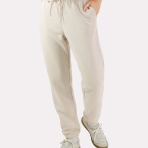 The relaxed fit design includes a covered elastic waistband with recycled polyester drawcords, side pockets, and a 1″ elastic bottom band for a classic jogger look. With side seams and a differential rise, these pants ensure a comfortable, flattering fit.