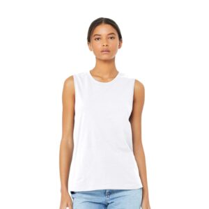 BELLA + CANVAS Women’s Jersey Muscle Tank, Relaxed Fit Sleeveless Top, White, 6 Pack