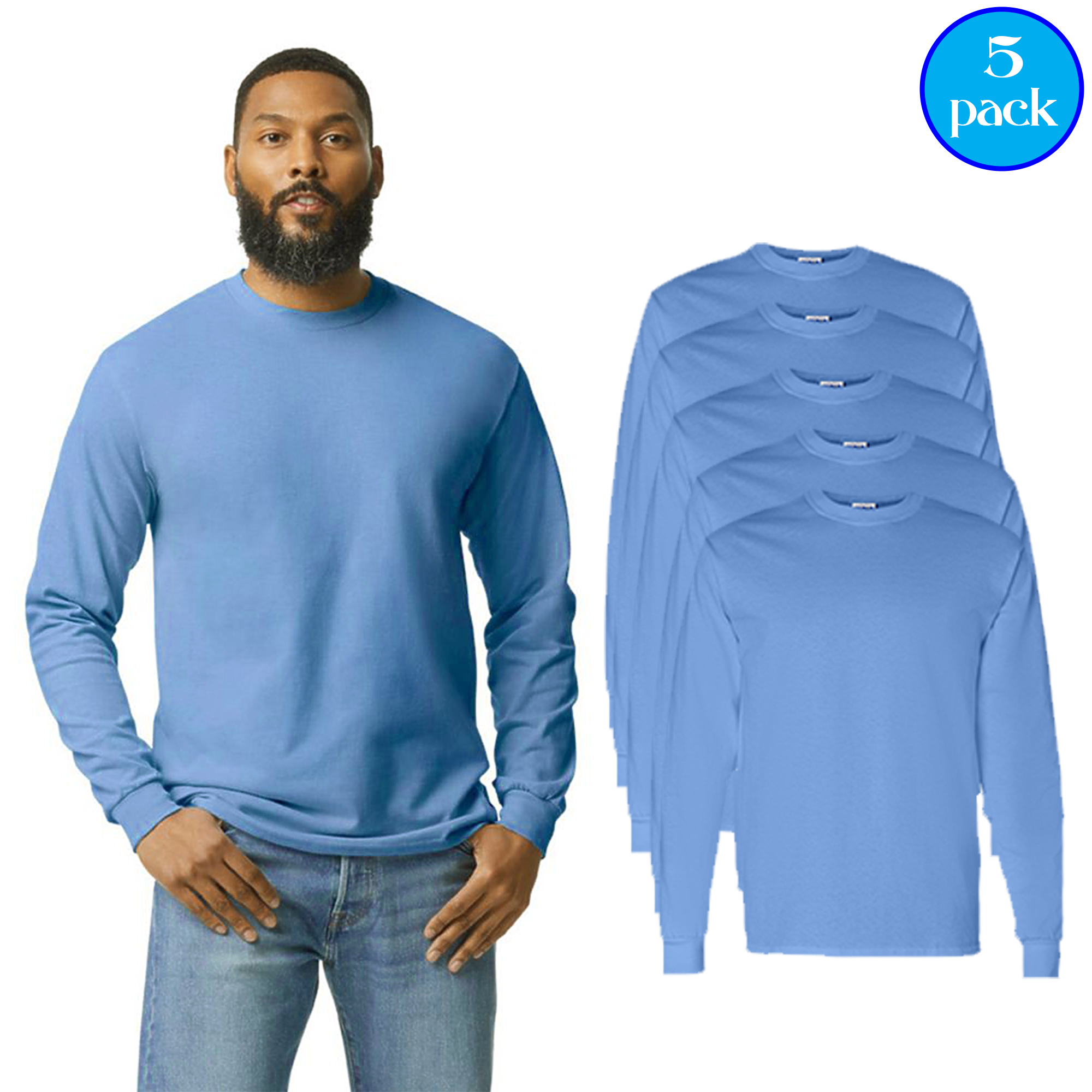 Gildan Heavy Cotton Long Sleeve Shirts for Men – 5 Pack, Soft & Durable, Carolina Blue