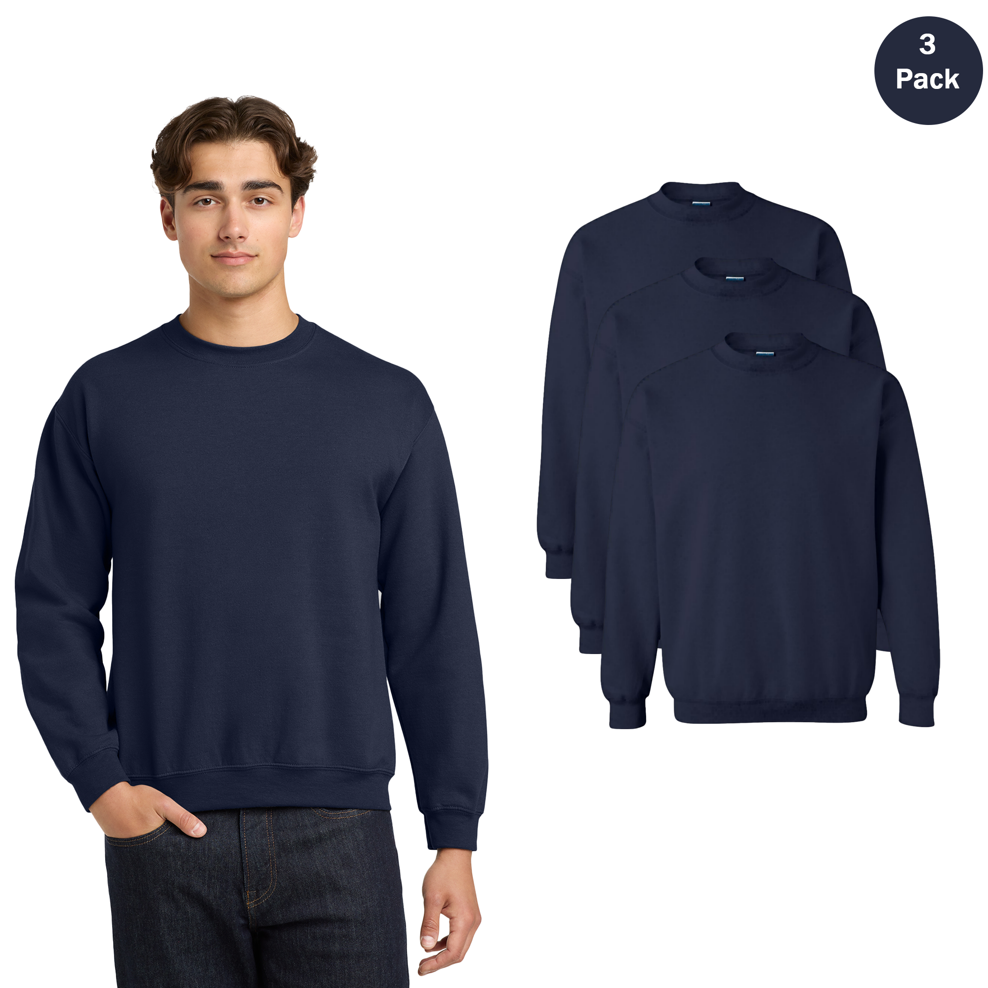 Gildan Men’s 3-Pack Classic Navy Crewneck Fleece Sweatshirts S–5XL