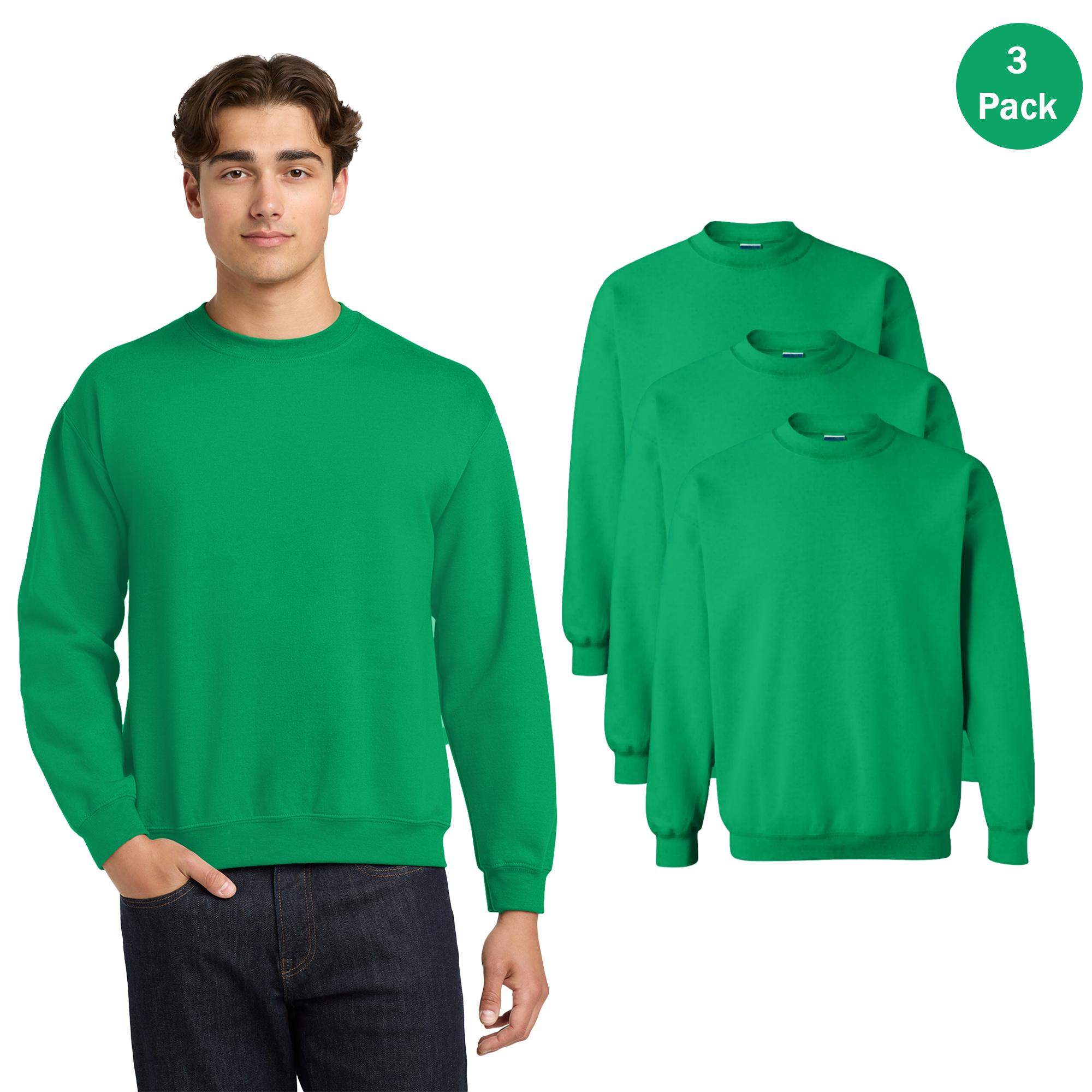 Gildan Men’s 3-Pack Crewneck Sweatshirt, Heavy Blend, Irish Green (S–3XL) delivers dependable warmth, comfort, and durability for work, casual wear, or layering. This 3-pack includes three Irish Green crewneck sweatshirts, making it perfect for teams, work crews, schools, or custom printing projects. Each sweatshirt is made from a 50% cotton / 50% polyester fleece blend with 8 oz./yd² (US), offering a soft interior, durable exterior, and long-lasting performance even after repeated wear. Designed with a classic fit, the sweatshirts feature 1×1 ribbed collar, cuffs, and waistband with spandex for flexibility, stretch, and shape retention. MVS Air-spun Heavy Blend technology minimizes pilling, improves fabric strength, and provides a smooth surface ideal for screen printing or adding custom logos. A tear-away label ensures irritation-free wear, and the sweatshirts are machine washable for easy care. Made with OEKO-TEX certified low-impact dyes and responsibly sourced cotton through the U.S. Cotton Trust Protocol, this 3-pack combines sustainability, comfort, and high-quality performance.