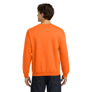 Gildan Men’s Heavy Blend Crewneck Sweatshirt, Safety Orange, 1 Pack (S–3XL) delivers comfort, durability, and high visibility for work or everyday wear. Made from an 8 oz./yd² 50/50 cotton-polyester fleece, it feels soft, holds its shape, and resists pilling with MVS Air-spun technology. The ANSI/ISEA 107 compliant Safety Orange color makes it ideal for construction, road crews, or outdoor jobs. A classic fit with 1×1 rib cuffs and waistband with spandex ensures better stretch and recovery. Finished with a tear-away label, OEKO-TEX certified low-impact dyes, and sourced through the U.S. Cotton Trust Protocol.