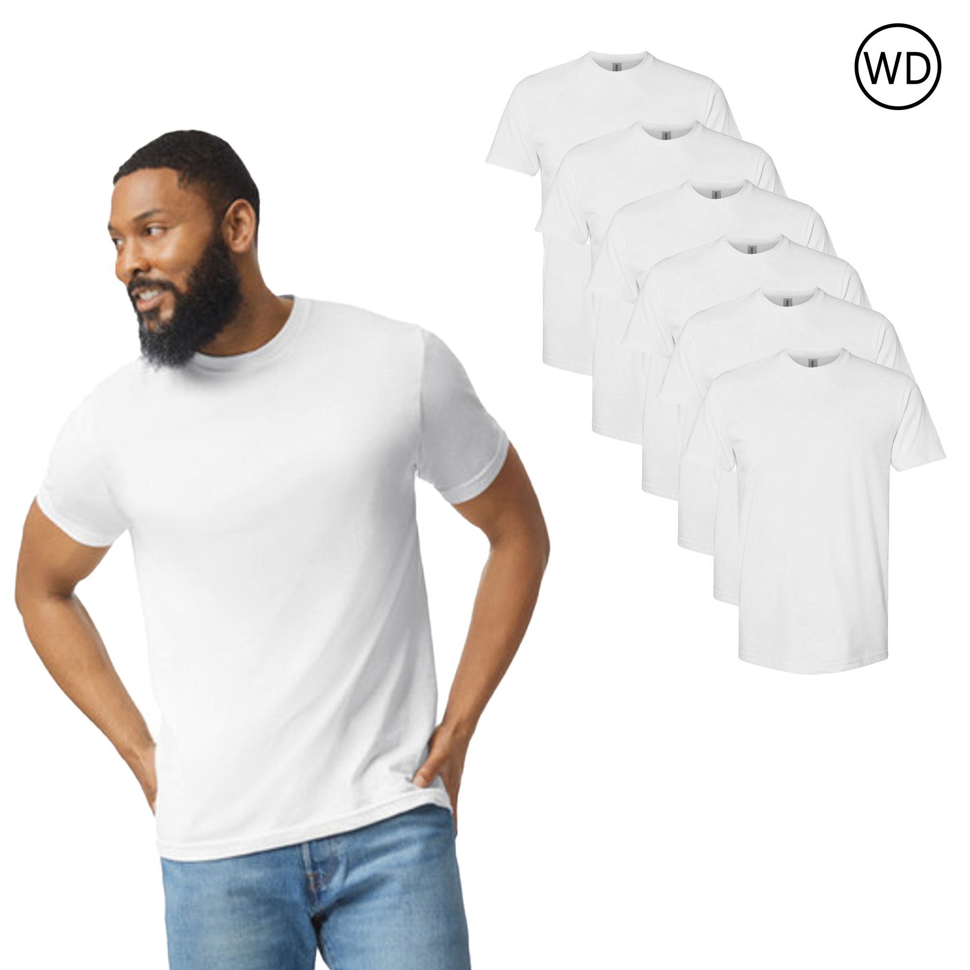 This 6-pack of Gildan Softstyle CVC T-Shirts delivers soft comfort, a modern fit, and excellent printability. Made with a smooth cotton-poly blend, these lightweight tees are perfect for casual wear, work uniforms, or custom printing.
