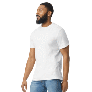 Upgrade your everyday basics with the Gildan Men’s Softstyle CVC T-Shirt in White. Made from a comfortable 60/40 ring-spun cotton and polyester blend, this shirt offers a soft, smooth feel with a lightweight drape that works well for layering or wearing on its own. The high stitch density provides a clean, smooth surface ideal for screen printing, HTV, DTG, and customization. Designed with a modern classic fit, it sits comfortably on the body without feeling boxy, while the narrow rib collar adds a polished finish. Taped neck and shoulders enhance long-term durability, and the tear-away label helps eliminate irritation for all-day comfort.