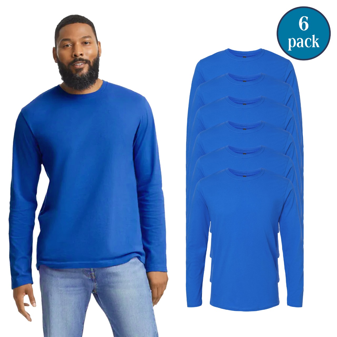 Gildan Men’s Softstyle Long Sleeve T-Shirts – Royal (6-Pack, Bulk Value Pack, 100% Ring-Spun Cotton, Modern Fit, Sizes S–3XL)