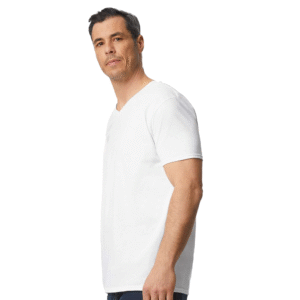 Refresh your everyday wardrobe with the Gildan Men’s Softstyle V-Neck T-Shirt in White. Crafted from lightweight 100% ring-spun cotton (fiber content may vary by color), this tee delivers a soft, smooth feel that stands out from traditional basic T-shirts. The fabric features a high stitch density, making it ideal for custom prints and screen printing, while the modern classic fit provides a flattering shape that isn’t too tight or too loose. A narrow V-neck rib collar adds a clean, stylish touch, and taped neck and shoulders enhance durability for long-lasting wear. The tear-away label helps eliminate irritation for all-day comfort.
