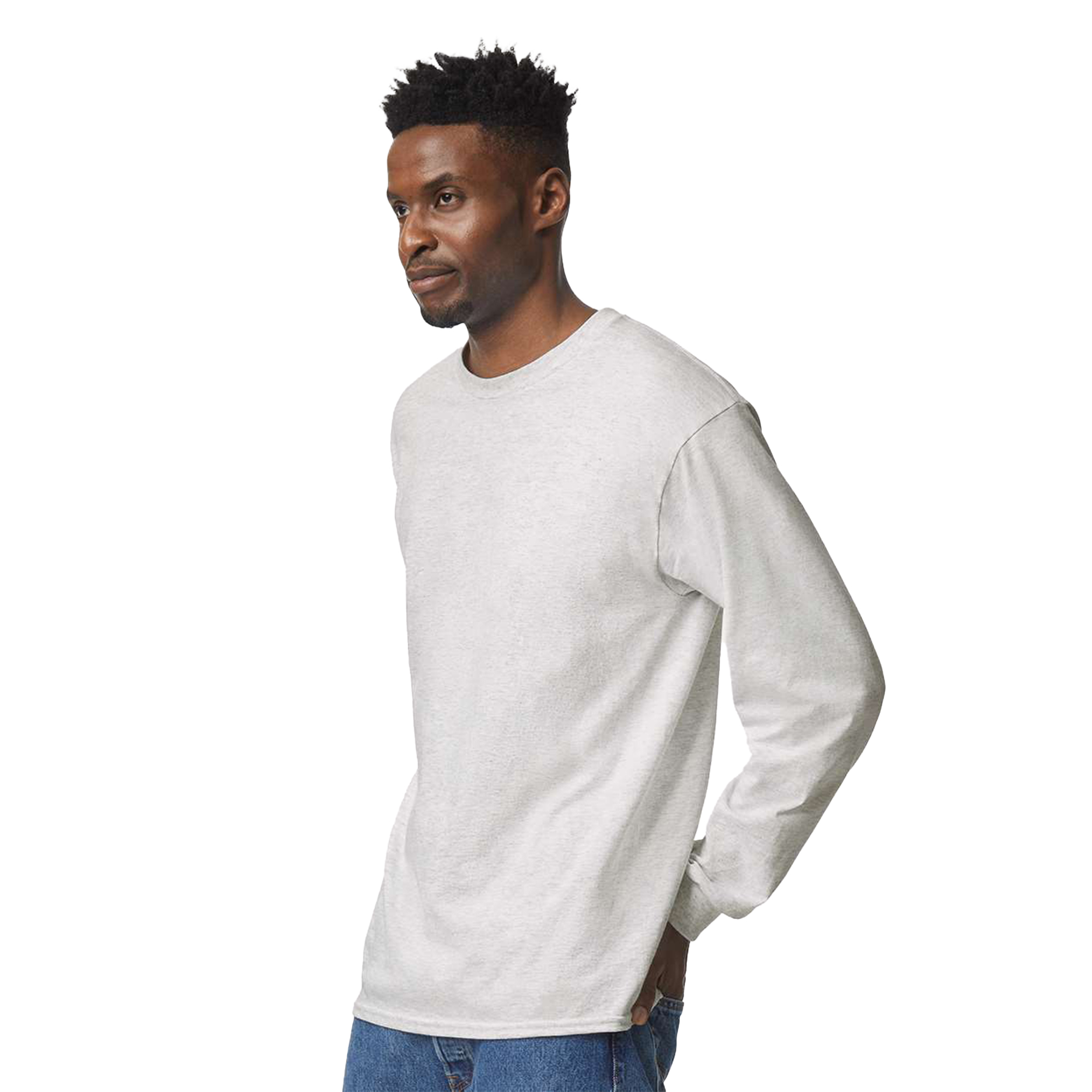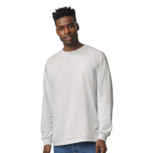 Gildan Men’s Ultra Cotton Long Sleeve Crewneck – 6 Pack in Ash Grey. Constructed from heavyweight 6 oz./yd² (US) / 10.1 oz./L yd (CA) 100% U.S.-grown cotton, these shirts deliver soft, durable comfort that lasts all day. The Ash Grey color features a 99/1 cotton/polyester blend, providing a subtle softness while maintaining the strength and quality Ultra Cotton is known for.