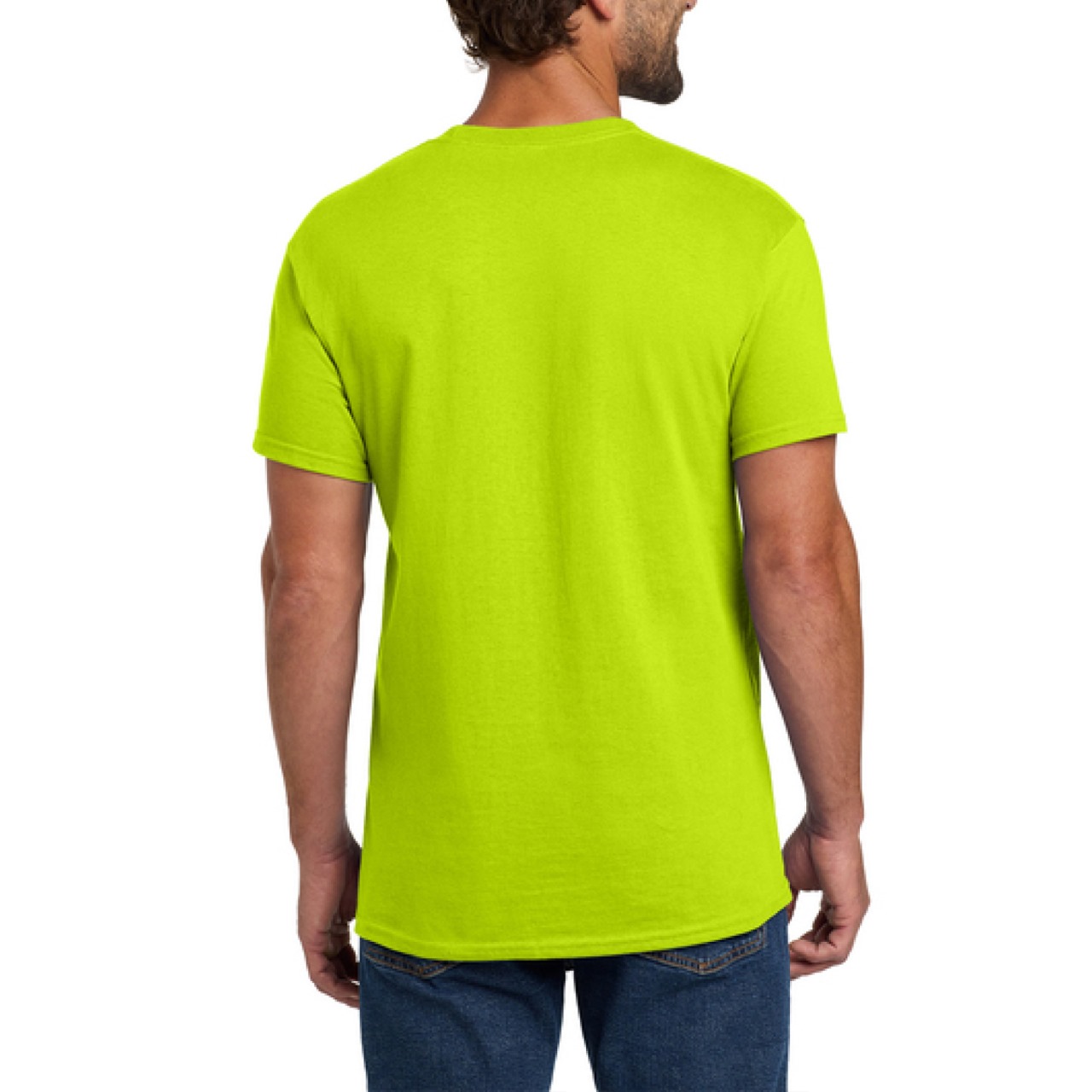 Hanes Men’s Classic Essential Crewneck Tee – Safety Green 2-Pack is built for comfort, durability, and visibility. Made from a 50/50 cotton/polyester blend (20 singles), these shirts feel soft against the skin while holding their shape through repeated wear and washing. The bold Safety Green color boosts visibility, making these tees a smart choice for job sites, outdoor work, or anyone who needs to stand out in low-light conditions.