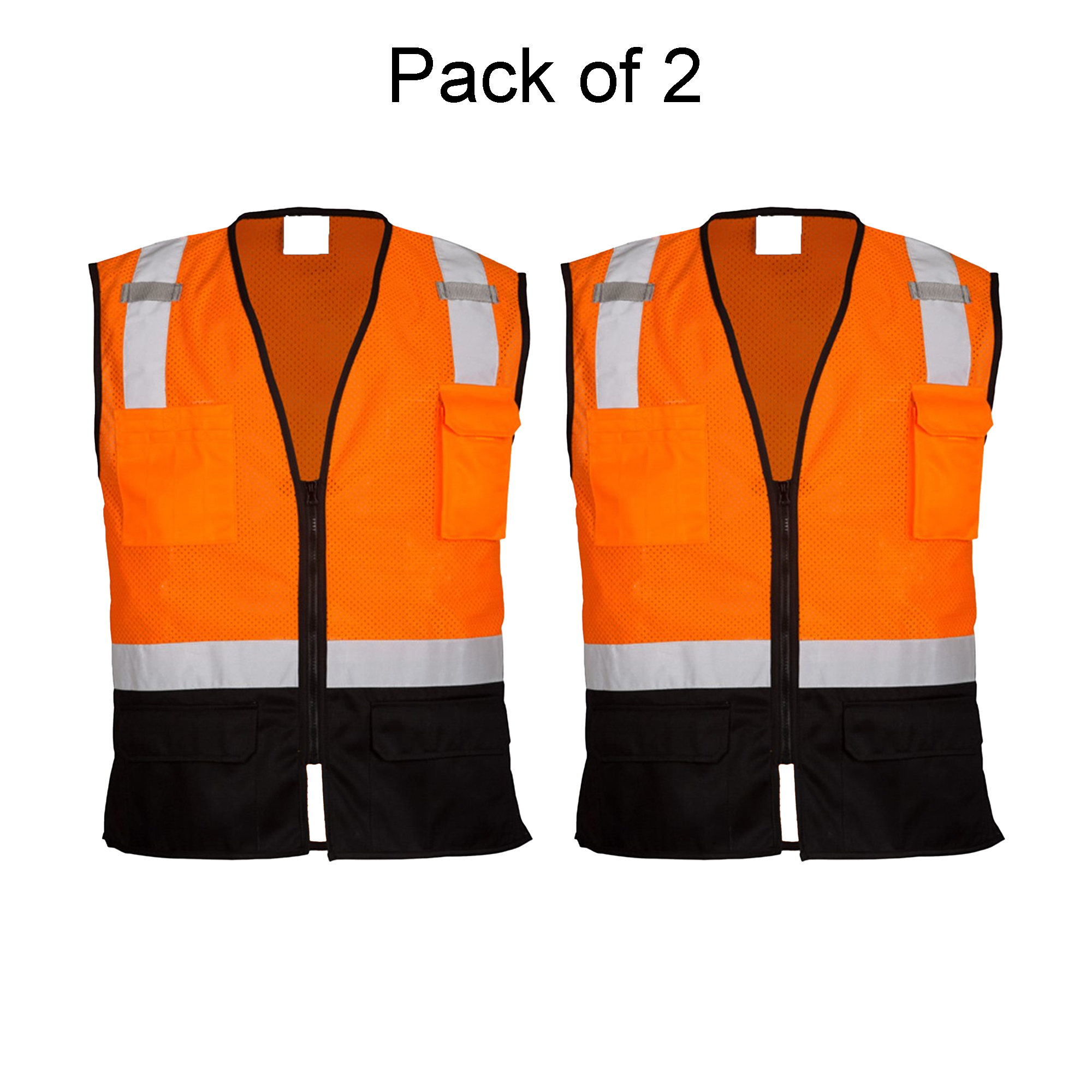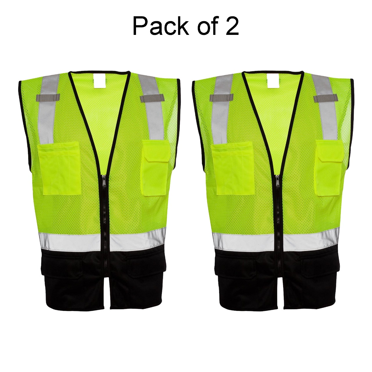 Stay visible, organized, and comfortable on the job with the Kishigo Black Bottom Mesh Class 2 Safety Vest (2-Pack). Made from lightweight, breathable 100% polyester mesh, this vest helps keep you cool throughout your shift. The solid black lower front panel helps hide dirt and wear, maintaining a cleaner appearance even in high-contact work environments.