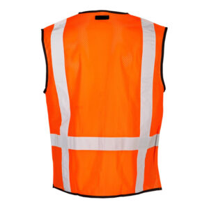 Kishigo Hi Vis Mesh Safety Vest for Men. Made from 100% polyester mesh, it features 2” reflective material, a zipper front, and multiple pockets for tools and gear. Includes mic tabs and durable black trim. Available in Lime (1509) and Orange (1529), sizes S–5XL—perfect for construction and roadwork.