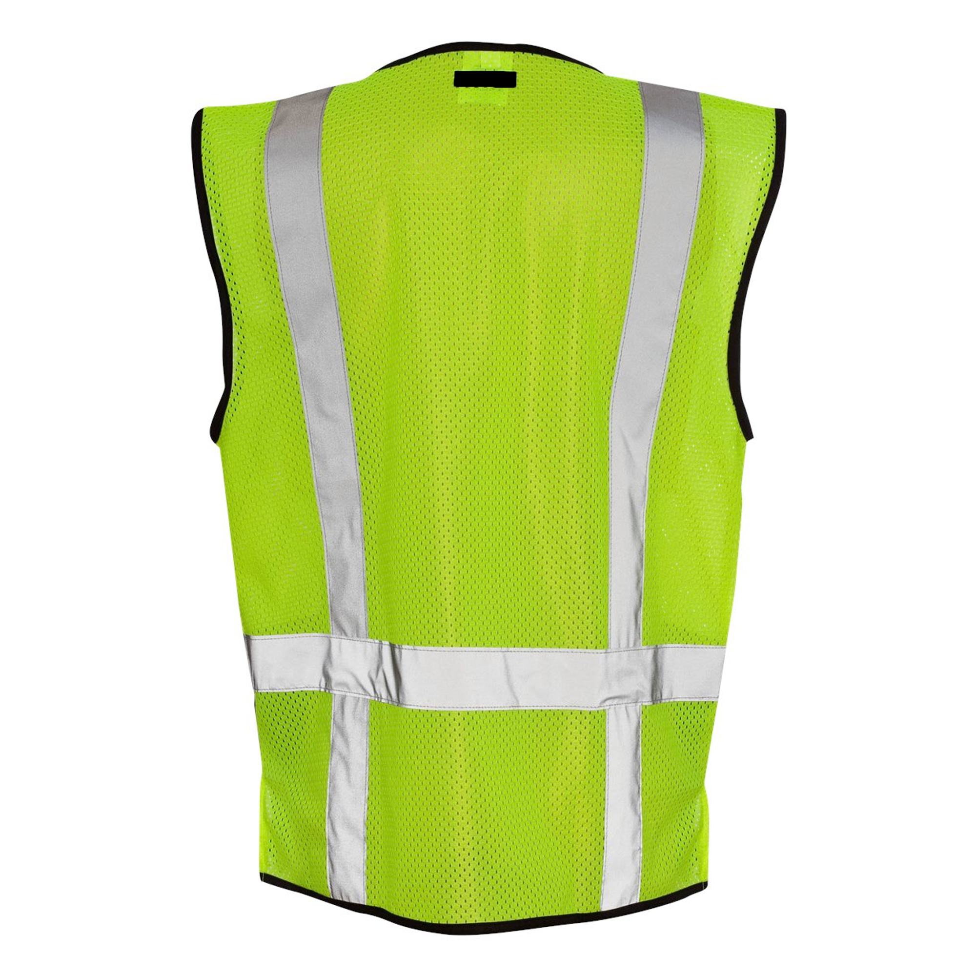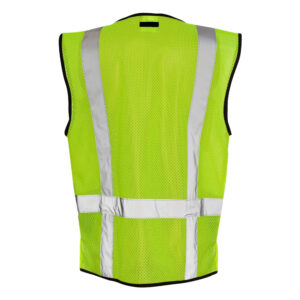 Kishigo Hi Vis Hook-and-Loop Mesh Safety Vest, High Visibility Construction Vest for Men. Made from 100% polyester mesh, this lightweight and breathable vest is designed for comfort during long work hours. Featuring 2-inch wide reflective material for superior visibility, it ensures safety in low-light or high-traffic environments. The solid black polyester lower front adds durability and a clean look, while the plastic zipper front closure provides easy on-and-off access (12” zipper for S–M, 15” for larger sizes). Functional storage includes two lower front patch pockets with flaps, a left chest radio pocket, a right chest 2-tier pocket, and two large inside pockets for tools and essentials. Complete with left and right chest mic tabs, this vest is perfect for construction, traffic control, or industrial work. Available in Lime (1509) and Orange (1529), sizes S–5XL.