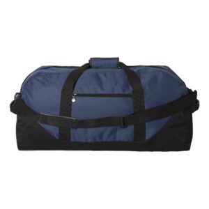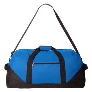 The Liberty Bags 30″ Duffel Bag – Large Travel & Gym Bag (Black, Navy, Red, Royal) is a spacious and durable solution for travel, sports, and everyday carry. Constructed from sturdy 600D polyester made with 50% recycled material, it combines strength with eco-conscious design. The bag features a detachable and adjustable black shoulder strap along with top and side grip handles for versatile, comfortable carrying options. The roomy main compartment provides ample storage for clothing, gym gear, or travel essentials, while the front zippered pocket keeps smaller items organized and easily accessible. A contrasting black bottom adds durability and style. Available in Black, Navy, Red, and Royal, this duffel is perfect for individuals seeking a reliable, eco-friendly bag in a large 30-inch size. Lightweight yet sturdy, it’s ideal for weekend trips, sports, or daily use. Its non-branded label makes it great for customization or personalization.