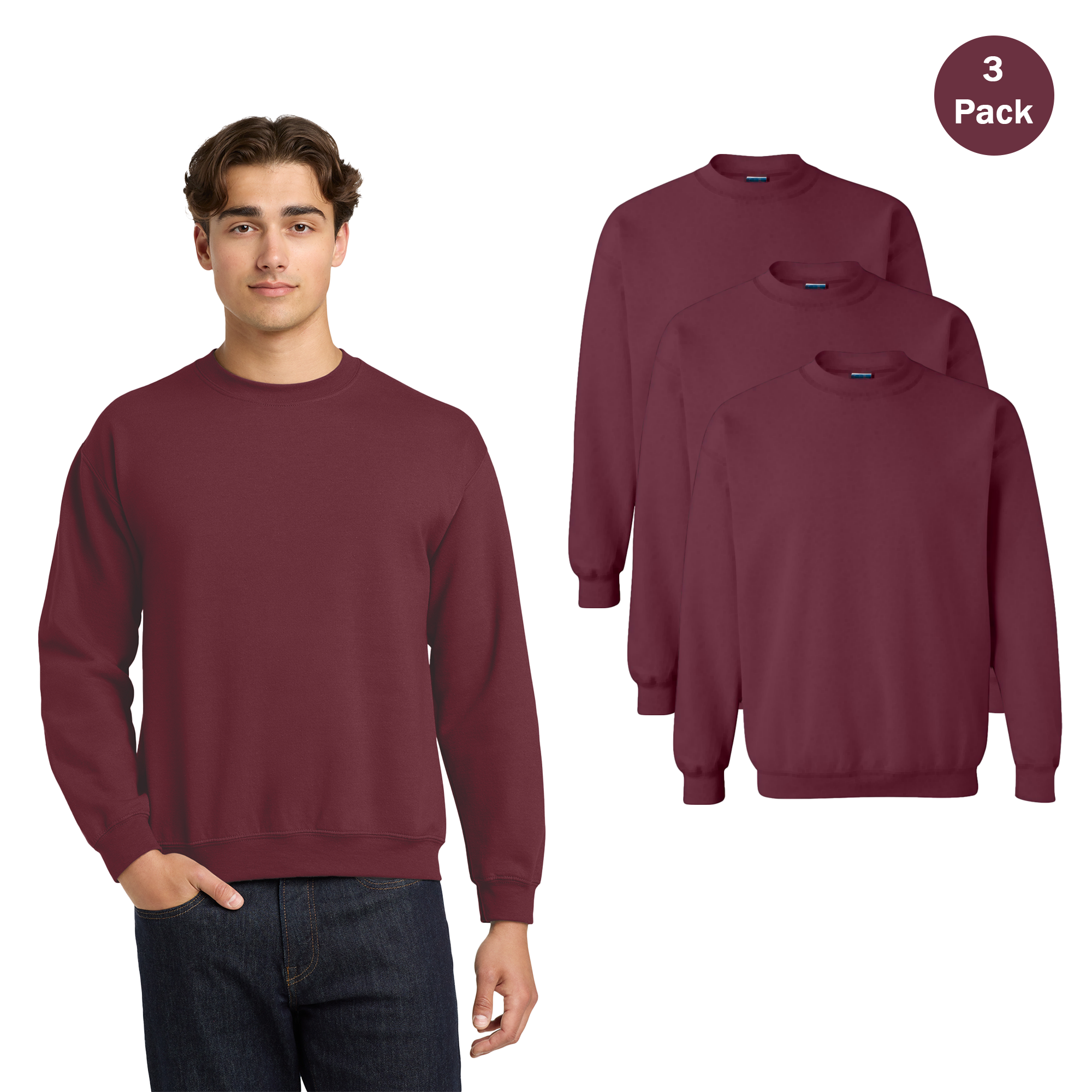 Gildan Men’s Heavy Blend Crewneck Sweatshirt 3-Pack, Maroon (S–3XL) provides dependable warmth, lasting comfort, and durable performance for work, casual wear, or layering in cooler weather. This 3-pack features three Maroon crewneck sweatshirts, making it ideal for teams, work crews, schools, or custom printing projects. Each sweatshirt is crafted from 50% cotton / 50% polyester fleece with 8 oz./yd² (US), offering a soft interior, strong exterior, and consistent quality through repeated wear. The sweatshirts feature a classic fit with 1×1 ribbed collar, cuffs, and waistband with spandex for stretch, shape retention, and ease of movement. MVS Air-spun Heavy Blend technology minimizes pilling, enhances durability, and creates a smooth surface suitable for screen printing or adding custom logos. A tear-away label ensures irritation-free wear, while the garments are machine washable for convenient care. Made with OEKO-TEX certified low-impact dyes and responsibly sourced cotton through the U.S. Cotton Trust Protocol, this 3-pack combines comfort, sustainability, and long-lasting quality.