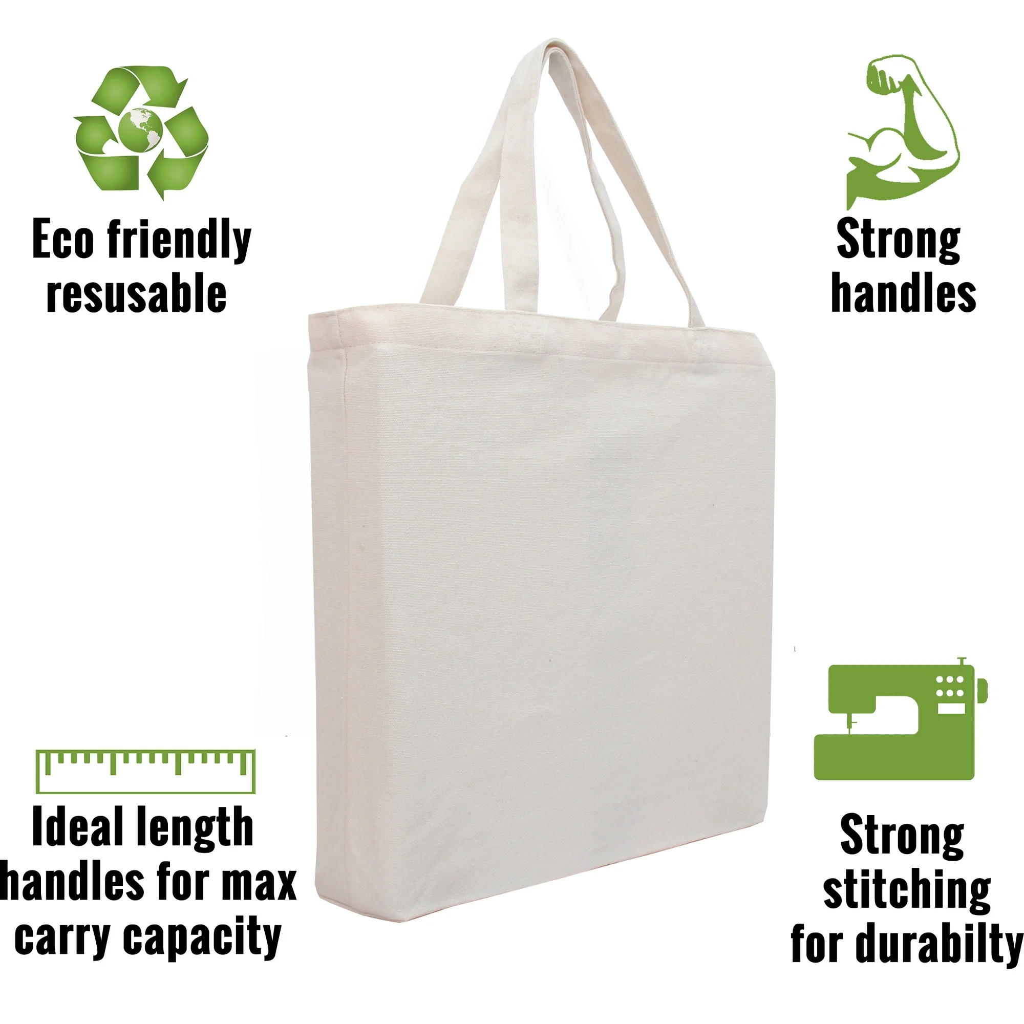 Experience durability and eco-friendly convenience with our premium 100% cotton canvas tote bag. Made from thick 10 oz fabric with reinforced stitching, this large reusable bag carries up to 40 lbs and is perfect for groceries, books, school, travel, and everyday use. Washable, long-lasting, and easy to customize with embroidery, vinyl, or paint.