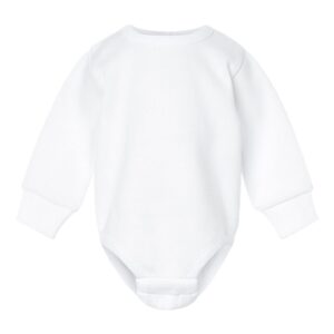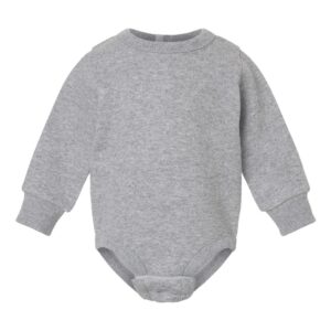 Rabbit Skins Baby Fleece Bodysuit – Warm Infant One-Piece Outfit (NB–18M). Made from soft 7.4 oz. three-end fleece, this infant bodysuit features a smooth 100% cotton face for gentle wear on sensitive skin. The durable blend—60/40 combed ringspun cotton/polyester, with 55/45 cotton/polyester in Heather and Natural Heather—keeps babies cozy without overheating. Designed for everyday convenience, this fleece one-piece includes heavy-gauge rib binding, an infant-friendly fit, and a YKK snap tape at the back neck to make dressing quick and easy. Ideal for playtime, outings, or seasonal layering, it offers both softness and durability. Available in multiple popular colors—White, Black, Heather, Natural Heather, Navy, Pink, Red infant fleece bodysuit colors—and sizes NB, 6M, 12M, 18M infant fleece bodysuit sizes, this cozy one-piece is perfect for baby wardrobes or gift giving.