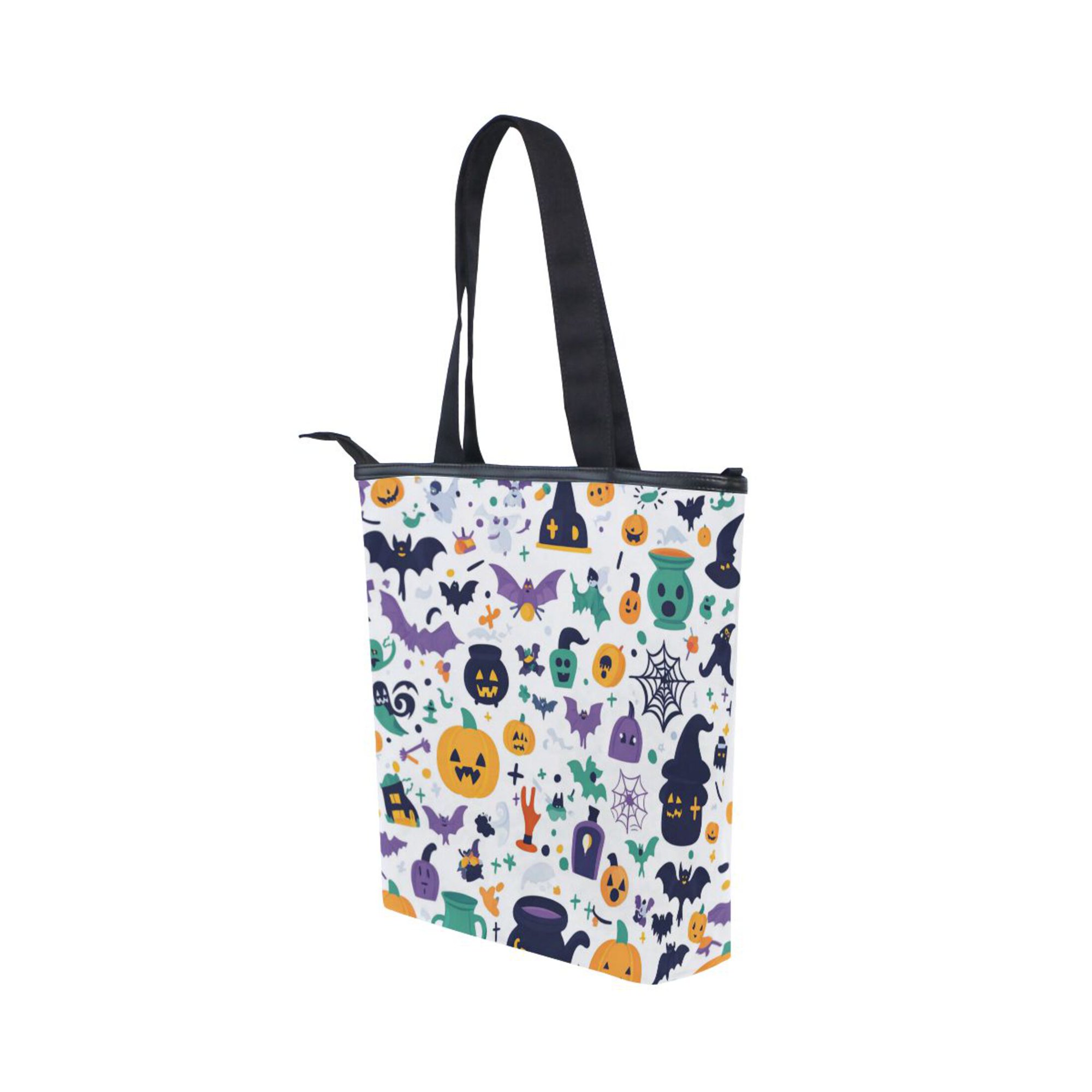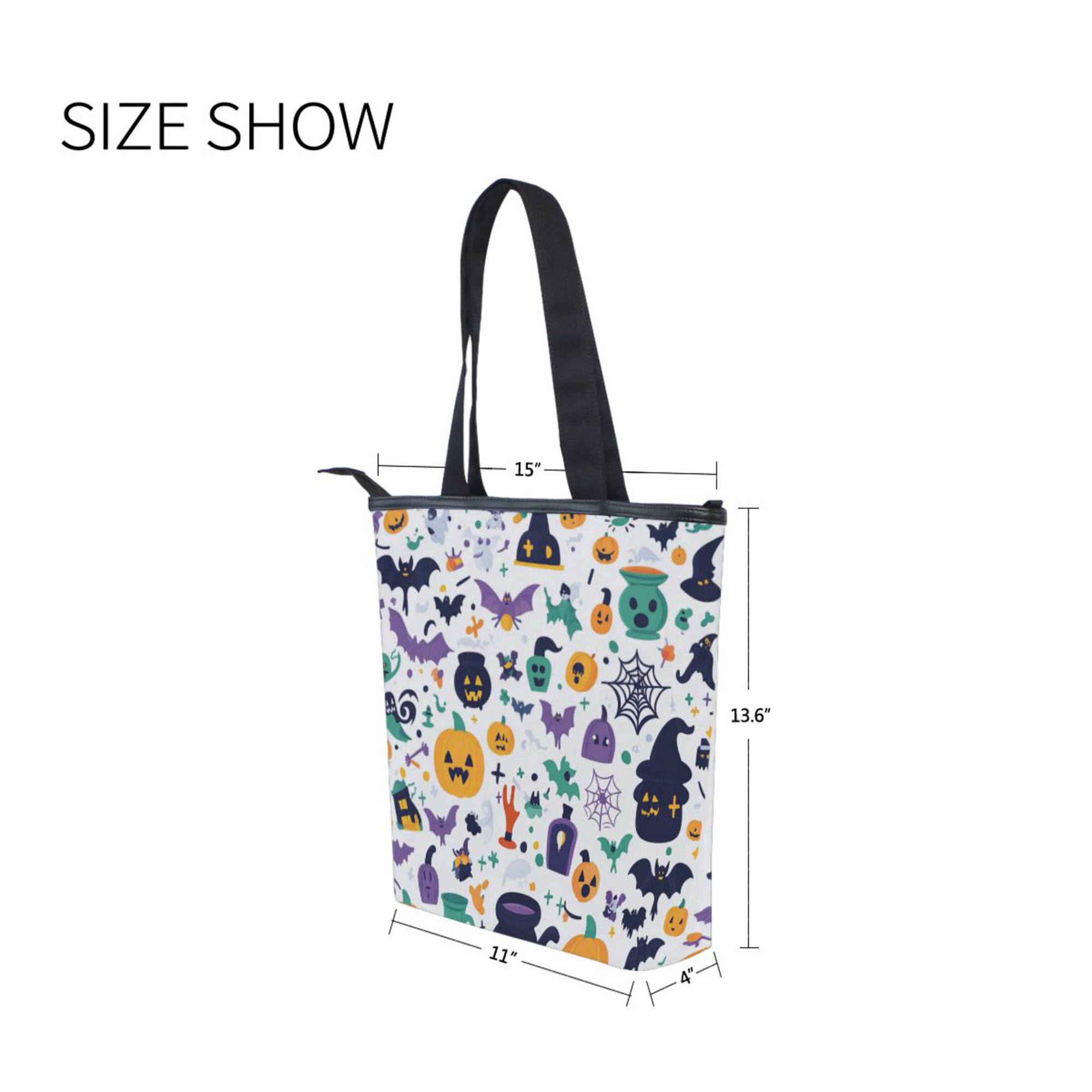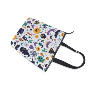 The Sarroy Cartoon Style Halloween Zipper Canvas Bag is a versatile and stylish accessory, designed for both fashion and practicality. Made from a durable combination of canvas and leather, this bag features a double-sided printed design that looks great from every angle, with leather-trimmed edges enhancing its premium feel. Measuring 28x10x34.5cm (11″x4″x13.6″), it offers a spacious main compartment for clothes, books, or bulky items, two internal patch pockets for phones and keys, and a secure zippered pocket for valuables.