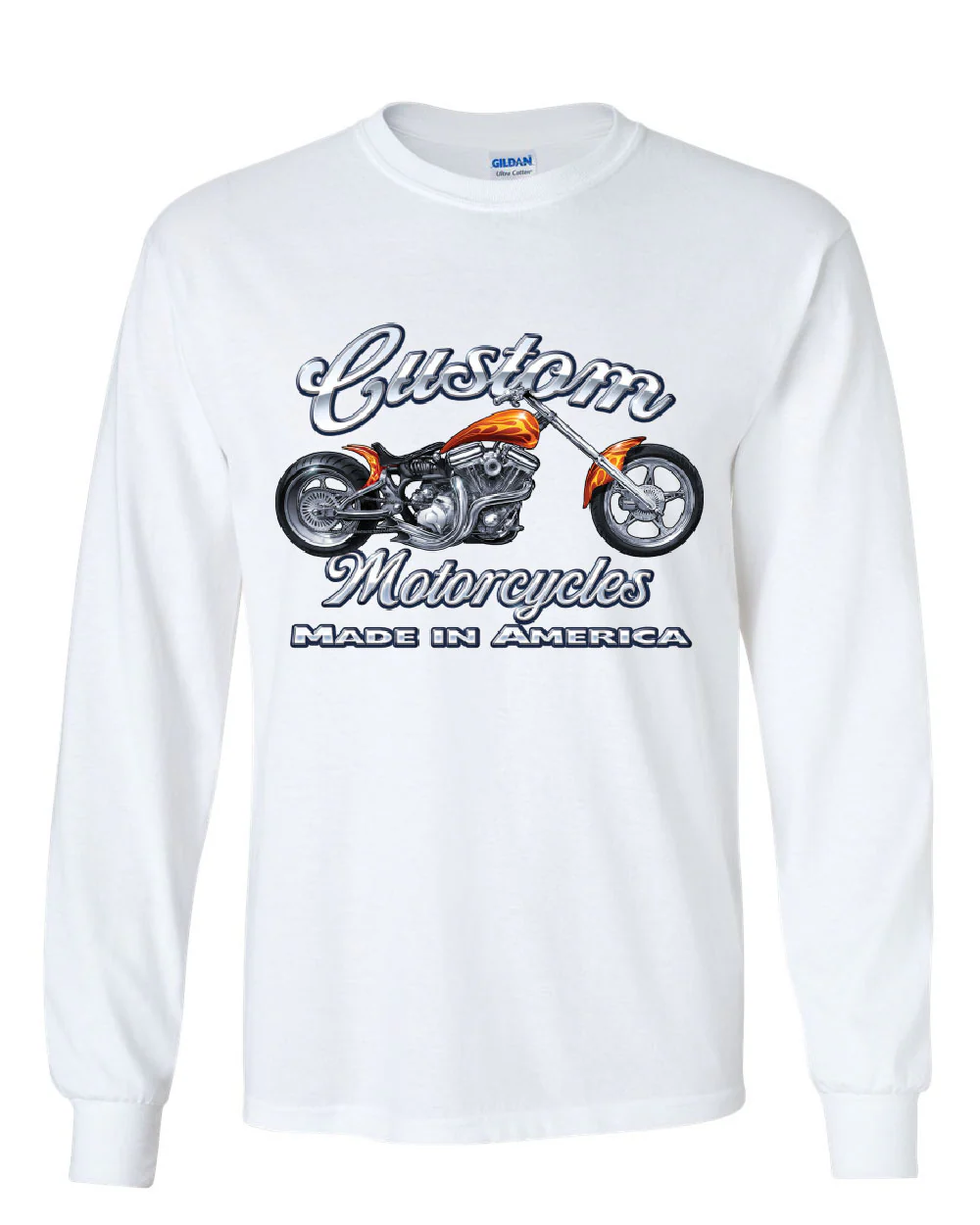 Ride in style with the Sarroy Custom Motorcycles Long Sleeve T-Shirt, crafted for bikers who appreciate bold designs and everyday comfort. Made from soft, breathable cotton, this long sleeve tee offers a regular fit that feels great whether you’re on the road or relaxing off duty. The eye-catching motorcycle and American chopper graphic gives the shirt a classic biker vibe, while the crew neckline and preshrunk fabric ensure lasting shape and durability. Designed for easy daily wear, it’s machine washable and made to withstand repeated use without losing its quality. Available in Black, White, and Gray, this versatile long sleeve tee is the perfect addition to any motorcycle enthusiast’s wardrobe—combining comfort, heritage style, and the timeless spirit of the open road.