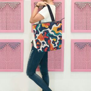 Elevate your everyday style with the Sarroy Zipper Canvas Handbag, designed for those who want both fashion and function in one versatile accessory. Made from a durable blend of sturdy canvas and premium leather trim, this bag offers a visually striking double-sided print featuring colorful irregular spots. The leather-edged opening adds a refined touch, enhancing both texture and durability.