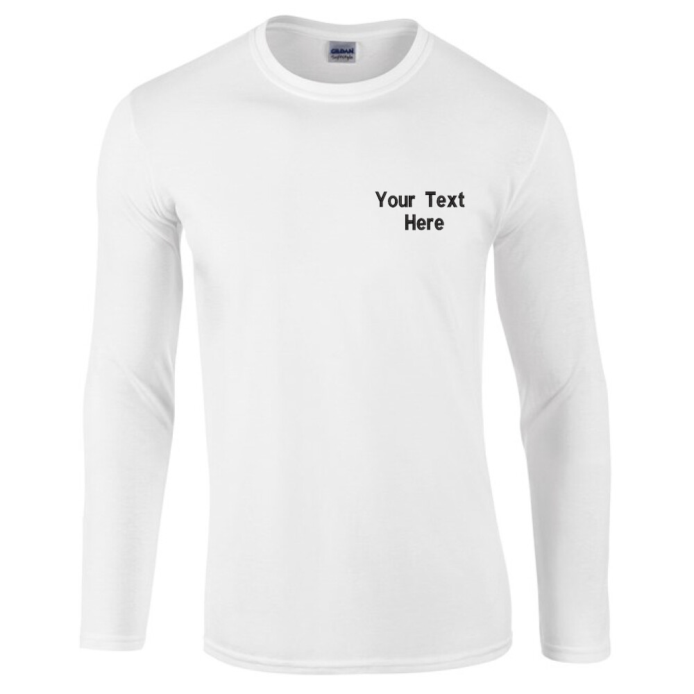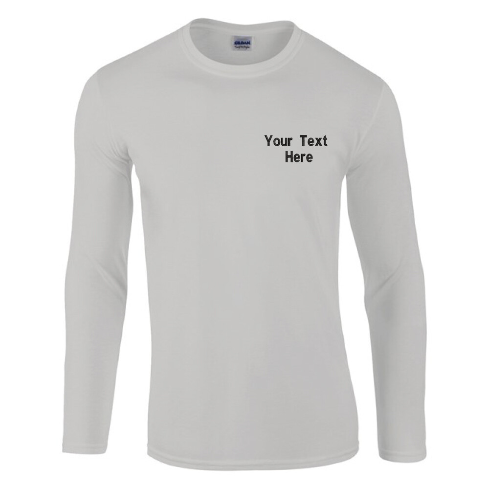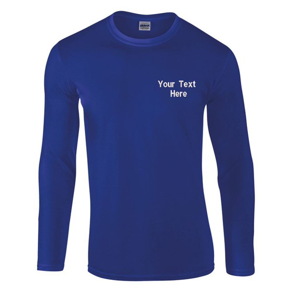 Upgrade your wardrobe or workwear with the Sarroy Personalized Custom Embroidered Gildan Softstyle Long Sleeve T-Shirt. Designed for comfort and durability, this tee is made from soft ring-spun cotton and features a sleeker Eurofit for a more modern silhouette. The seamless twin-needle collar, taped neck and shoulders, and rolled-forward shoulder construction provide a polished and comfortable fit.