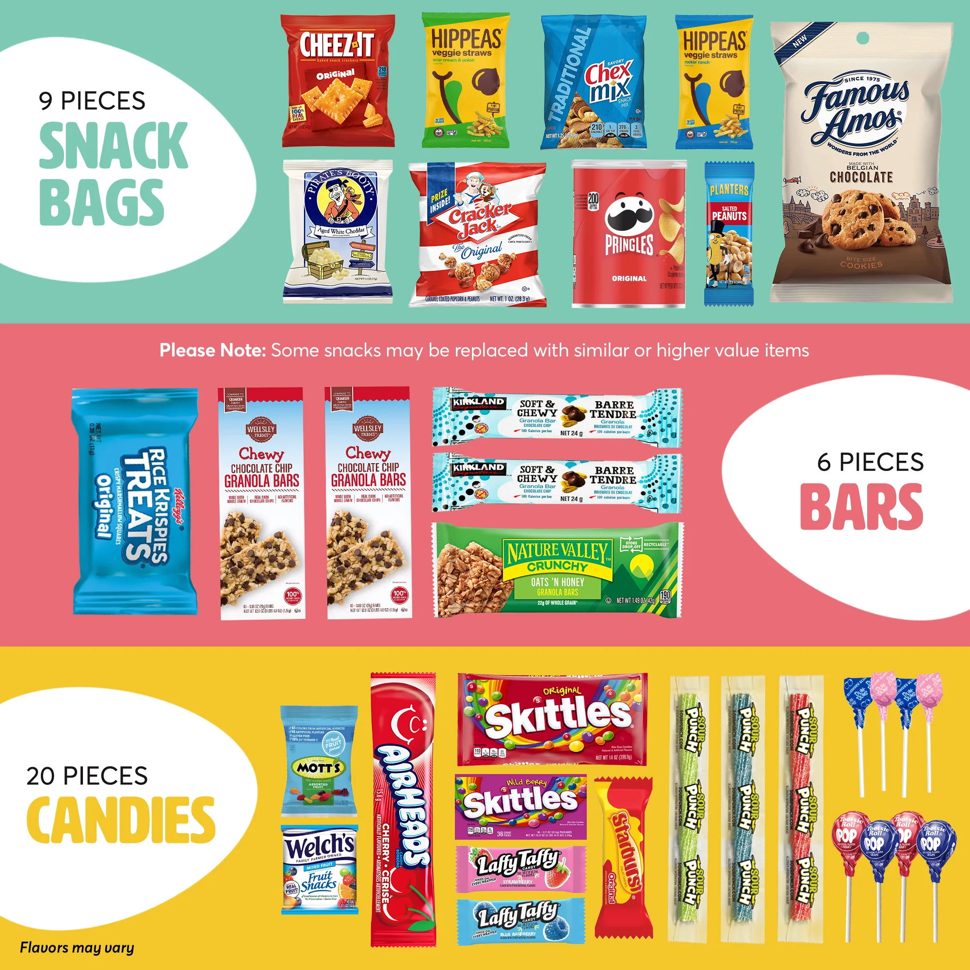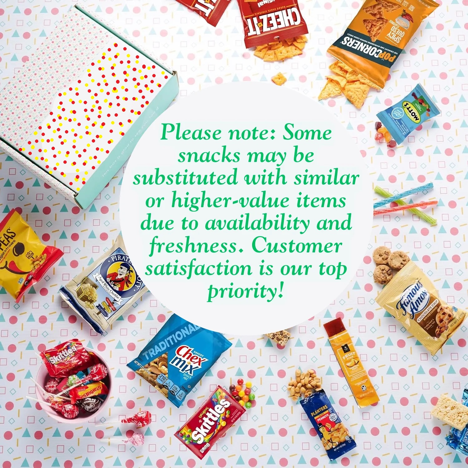 The Gift a Snack 35-Count Snacks Box is the ultimate snack variety pack designed for gifting, sharing, and on-the-go snacking. This high-quality snack box features individually wrapped chips, crackers, cookies, candy, and granola bars, including customer favorites like Airheads, Cheez-It, Chex Mix, Famous Amos, Kirkland Granola Bars, Dum Dums, Hippeas Veggie Straws, and more. Packaged in beautifully branded premium packaging and paired with a heartwarming greeting card, this snack gift set is perfect for adults, teens, employees, teachers, care packages for college students, birthdays, anniversaries, Easter baskets, graduation, thank-you gifts, and any special occasion. With an assortment of 35 popular snacks and a guaranteed fresh shelf life of 180 days, this variety pack delivers convenience, flavor, and joy in every box. Ideal for snack lovers, office treats, holiday gifts, family sharing, and corporate gifting, it’s a top choice for anyone who enjoys high-quality sweet and salty snacks.